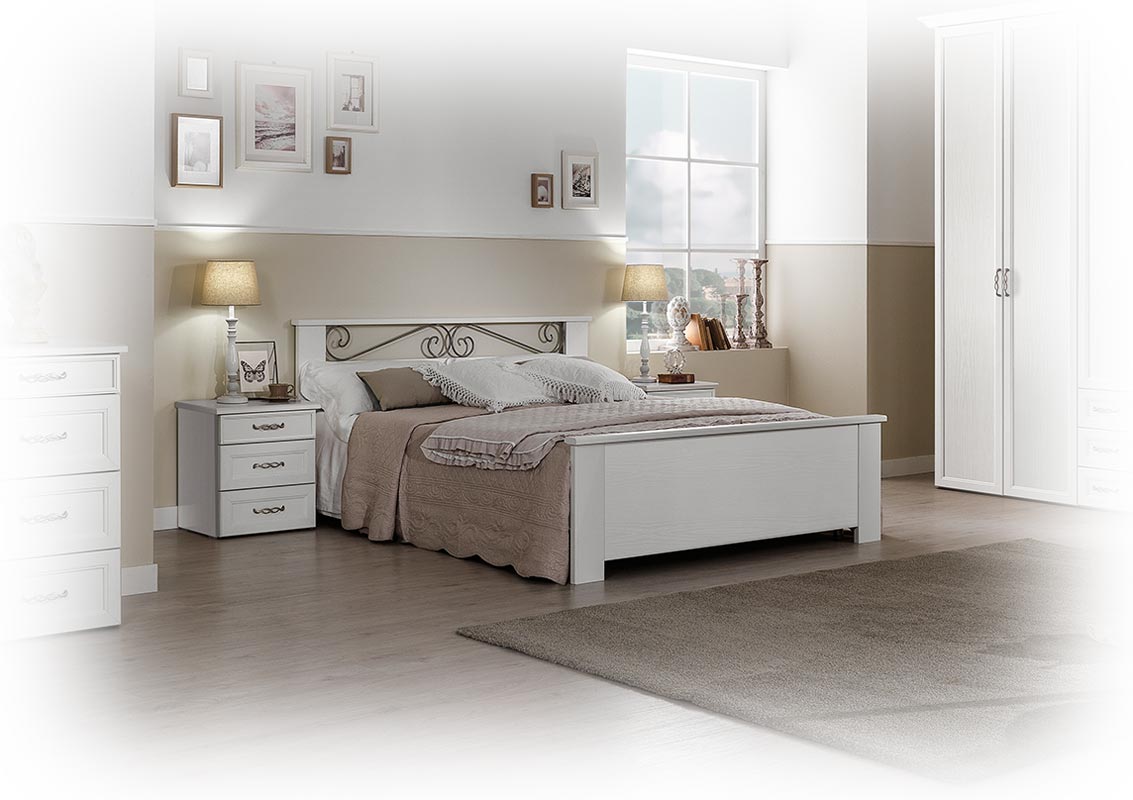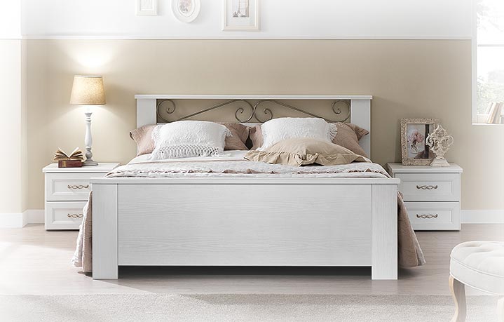El friso de metal pintado del cabecero añade un toque de clase y elegancia.