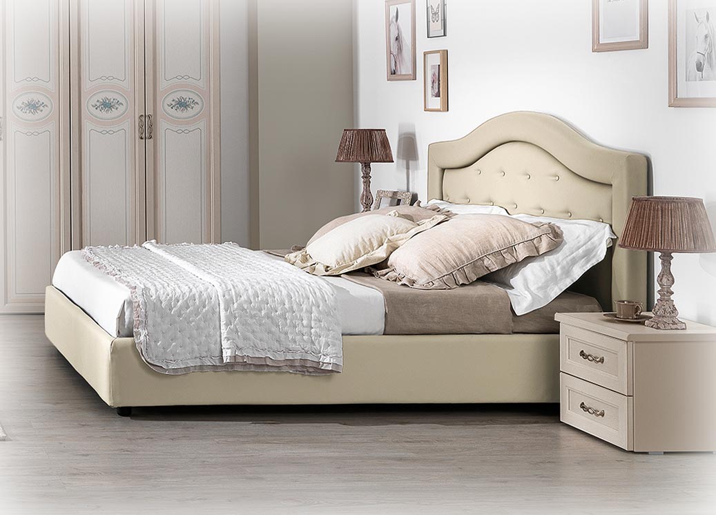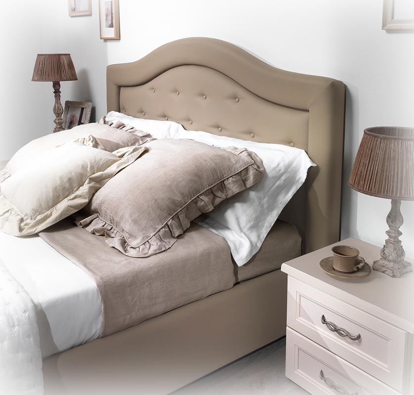 Para combinar confort y belleza, un suave tapizado de piel sintética, fácilmente lavable y muy resistente, enriquece el cabecero y hace de la cama una combinación perfecta de clásico y moderno, practicidad y elegancia, economía y calidad.