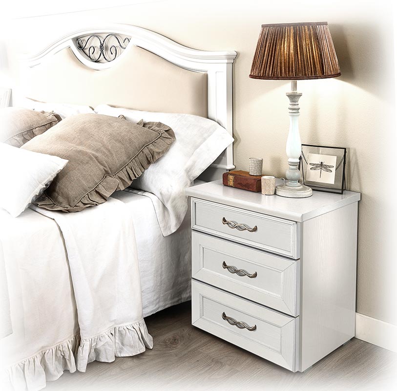 Una hermosa cama de estilo clásico, caracterizada por la línea sinuosa del cabecero y el piecero.