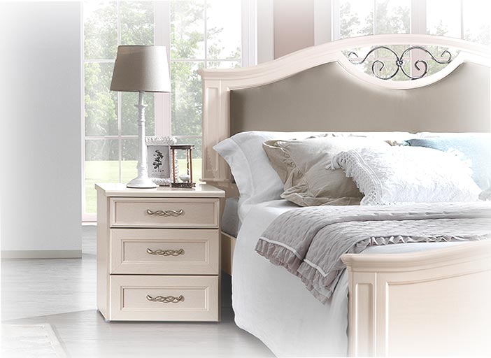 Para combinar confort y belleza, un suave tapizado de piel sintética, fácilmente lavable y muy resistente, enriquece el cabecero y hace de la cama una combinación perfecta de clásico y moderno, practicidad y elegancia, economía y calidad.
