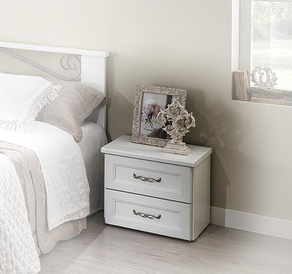 Mesilla de noche pequeña con dos cajones para el dormitorio.