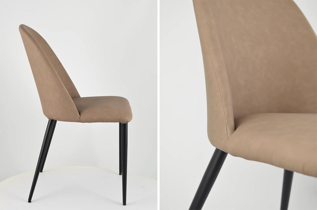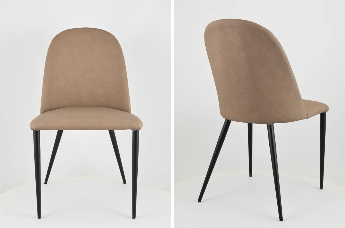 Estructura y patas de hierro, asiento y reposabrazos del respaldo tapizados con espuma de poliuretano y recubiertos de piel sintética.