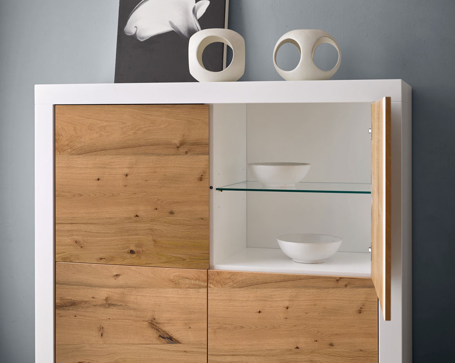Aparador que reúne, en una línea contemporánea, toda la belleza de la madera en su estado natural.