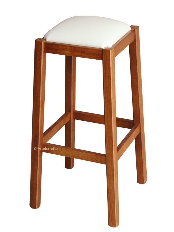 Taburete tapizado clásico con estructura de madera maciza de haya, es muy cómodo gracias al asiento acolchado para el que es posible elegir la tapicería preferida.