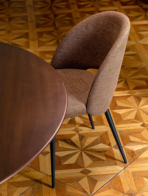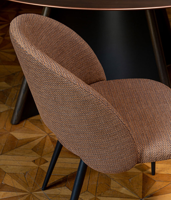 Silla tapizada estilo moderno y contemporáneo.