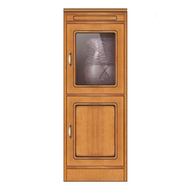 Armario modular espacioso y funcional, compuesto por una robusta estructura de madera. El espacio se organiza en 2 compartimentos de las mismas dimensiones: uno cerrado por una puerta de madera y el otro por una puerta de cristal. Su estilo versátil y original se adapta fácilmente a diversos contextos de decoración. Puede utilizarse en el salón, el dormitorio, el estudio o el recibidor como un práctico armario.