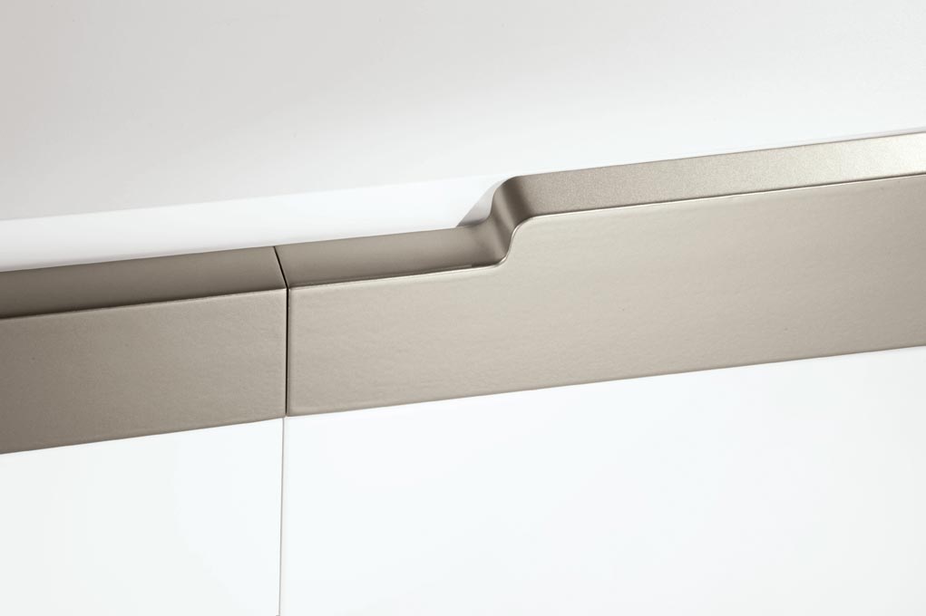 Presentado aquí en la versión lacado blanco con tiradores lacados metalizados. También disponible en otros acabados, contacta con nosotros para más información.