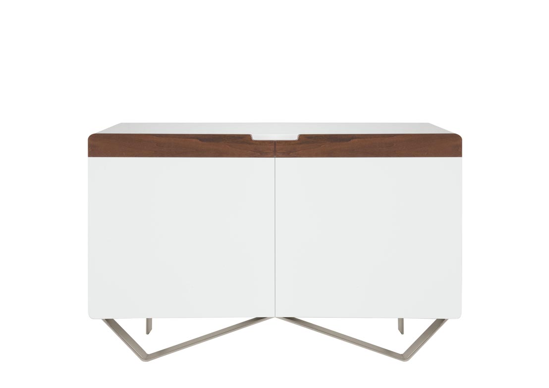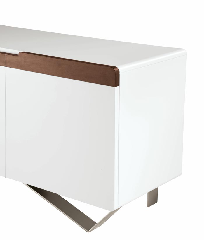 Este aparador moderno de líneas sencillas y limpias y diseño geométrico es perfecto para ocupar un rincón del salón.