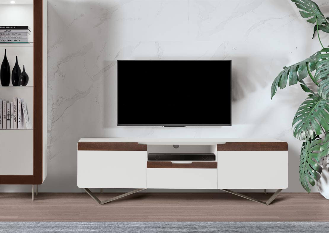 Un mueble de TV de líneas sencillas pero de gran efecto estético.