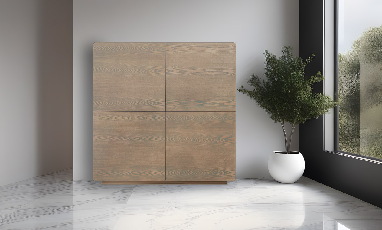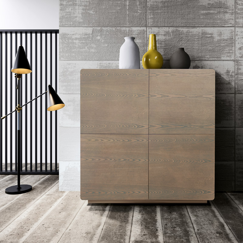 Aparador cuadrado de 4 puertas de estilo minimalista para un espacio de estilo contemporáneo.