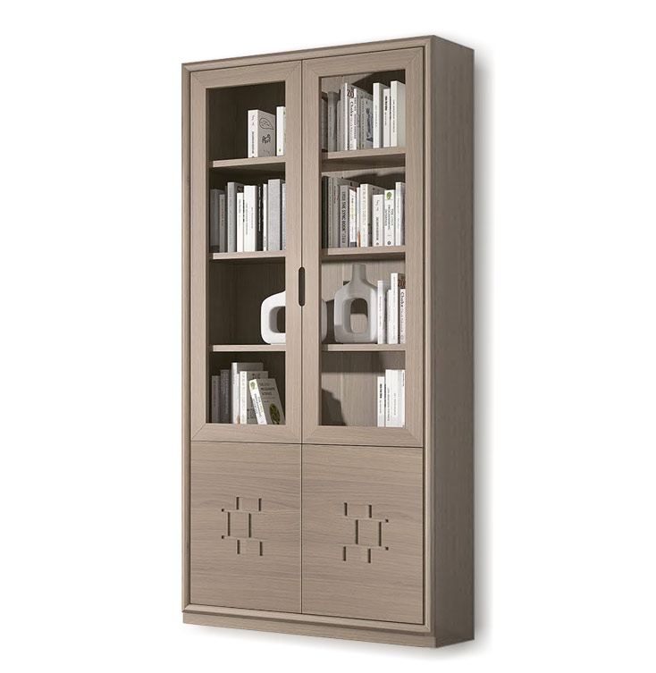 Las puertas de vidrio en la parte superior protegen libros y objetos de colección del polvo. El espacio está dividido por tres resistentes estantes regulables en altura, capaces de soportar incluso pesos más importantes.