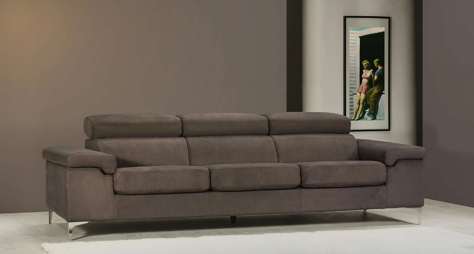 La particularidad de este sofá es sin duda la posibilidad de regular los cojines reposacabezas del respaldo en 3 alturas diferentes.