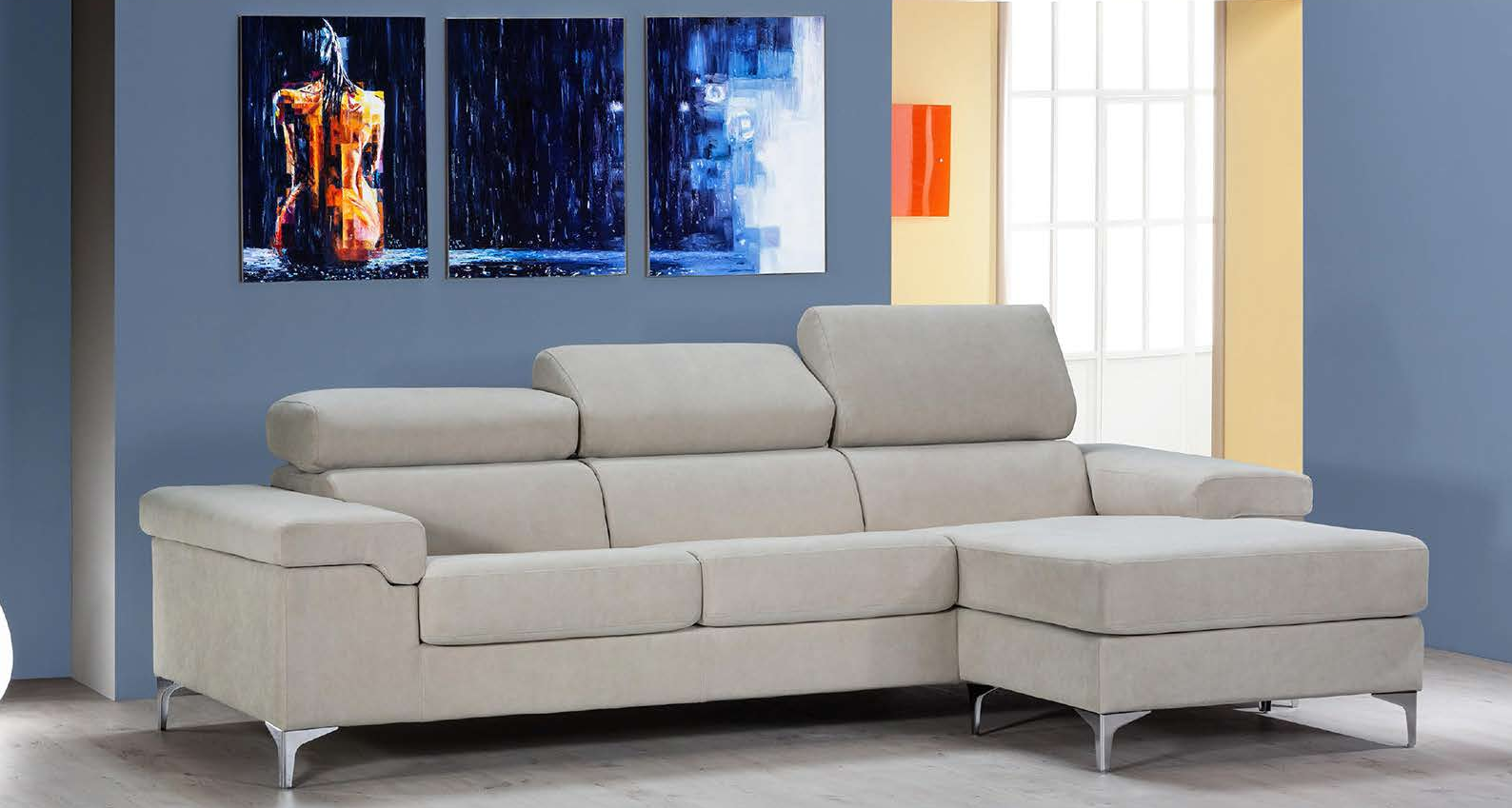 Sofá de color muy claro con patas de metal, elegante y luminoso, perfecto para dar ligereza y refinamiento a cualquier ambiente.