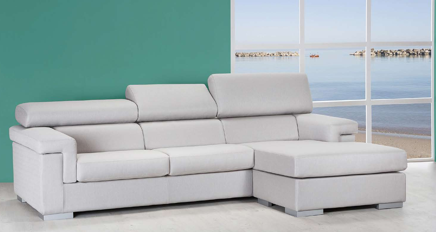 Sofá de 3 plazas compuesto por 2 elementos con península, completamente desenfundable, con una robusta estructura de madera y suspensiones internas con cinchas elásticas de alta resistencia. Asiento y respaldo de espuma de poliuretano de alta densidad para un gran confort. Tapizado en tejido hidrófugo 100% poliéster, fácil de limpiar a mano.