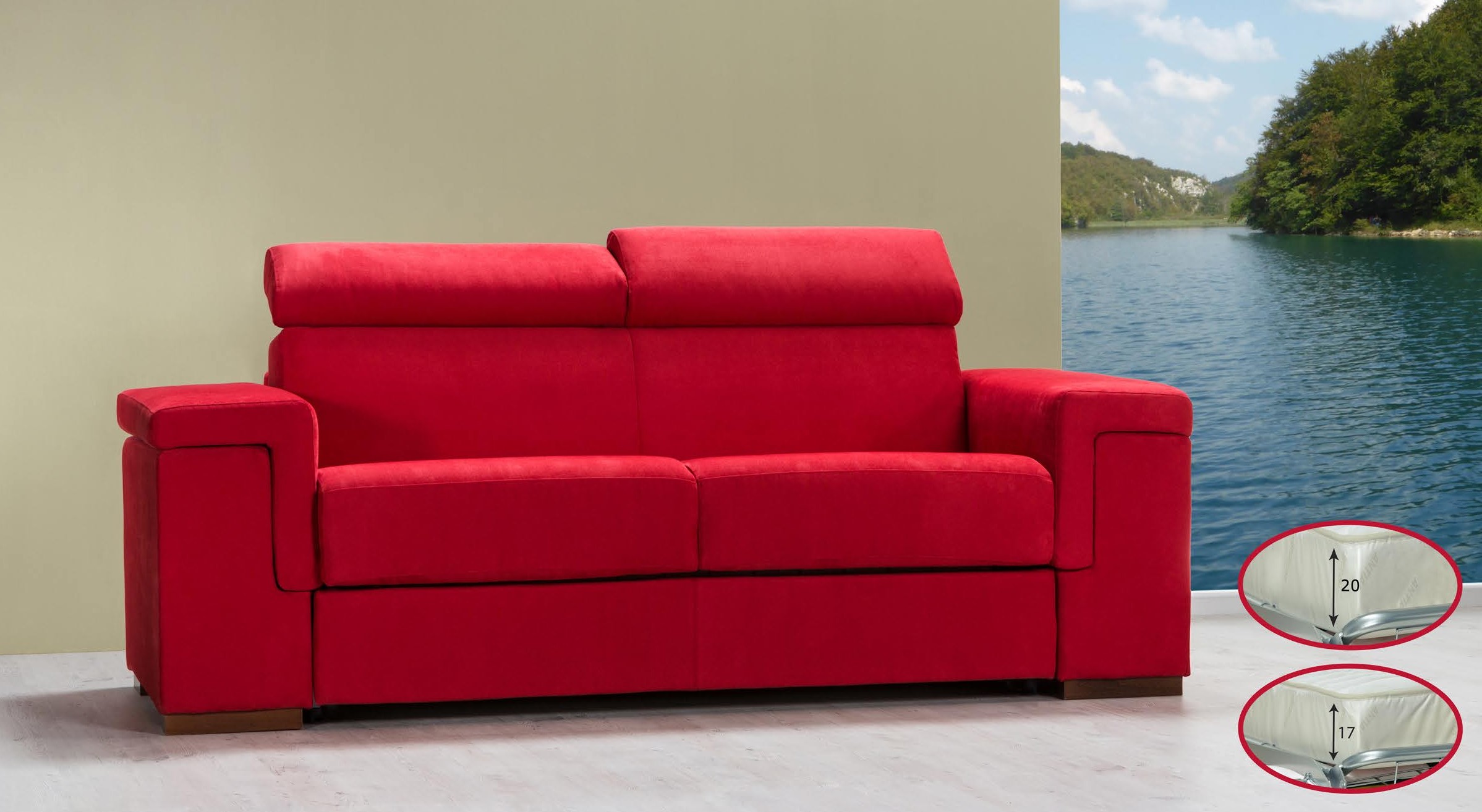 Sofá cama desenfundable con estructura de madera maciza y suspensiones internas con correas elásticas de alta resistencia. El asiento y el respaldo de espuma de poliuretano de alta densidad garantizan un confort duradero. Incluye una base electrosoldada y un colchón de espuma disponible en las versiones de 100x190x13 cm o 100x190x20 cm. El compartimento para almohadas aporta practicidad, convirtiendo este sofá en una opción versátil y elegante.