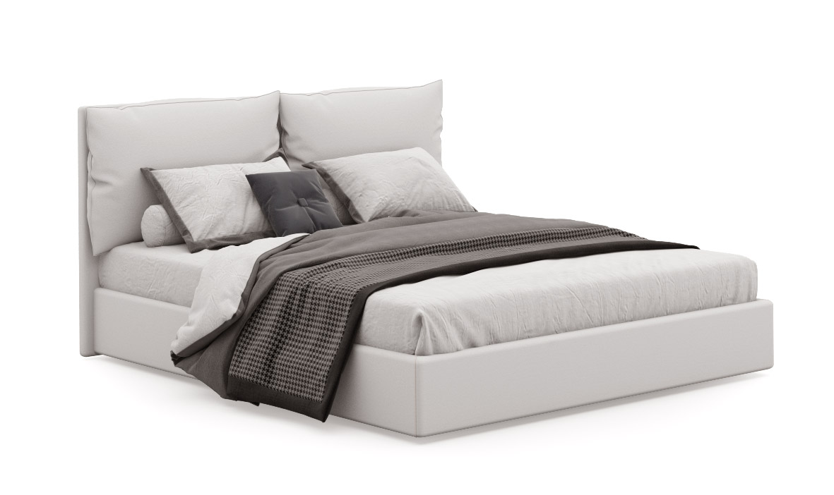 Cama matrimonial tapizada de estilo moderno y contemporáneo.