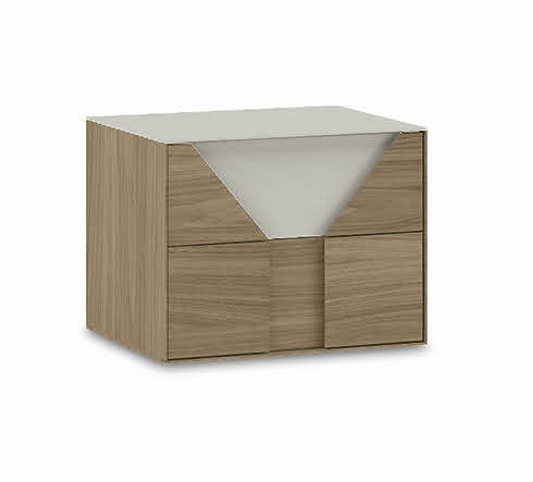 Completa la decoración de tu dormitorio con esta moderna mesilla de noche de dos cajones, ideal para combinar estilo y practicidad. Fabricada en aglomerado resistente, presenta dos chapados de melamina distintos que crean un llamativo contraste de acabados, añadiendo un toque de elegancia contemporánea.