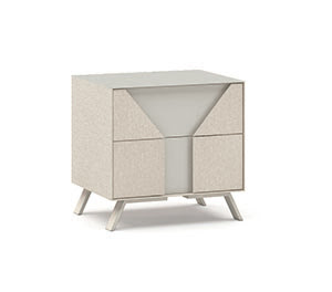 Completa la decoración de tu dormitorio con esta moderna mesilla de noche de dos cajones, ideal para combinar estilo y practicidad. Fabricada en aglomerado resistente, presenta dos chapados de melamina distintos que crean un llamativo contraste de acabados, añadiendo un toque de elegancia contemporánea.