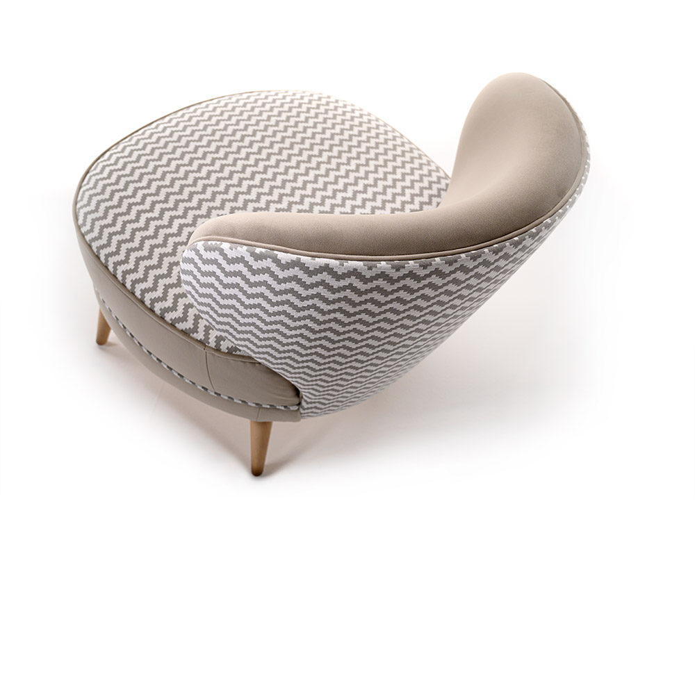 Este sillón tiene un armazón de madera de haya, enriquecido con detalles de madera contrachapada. Está diseñado para combinar belleza y solidez.