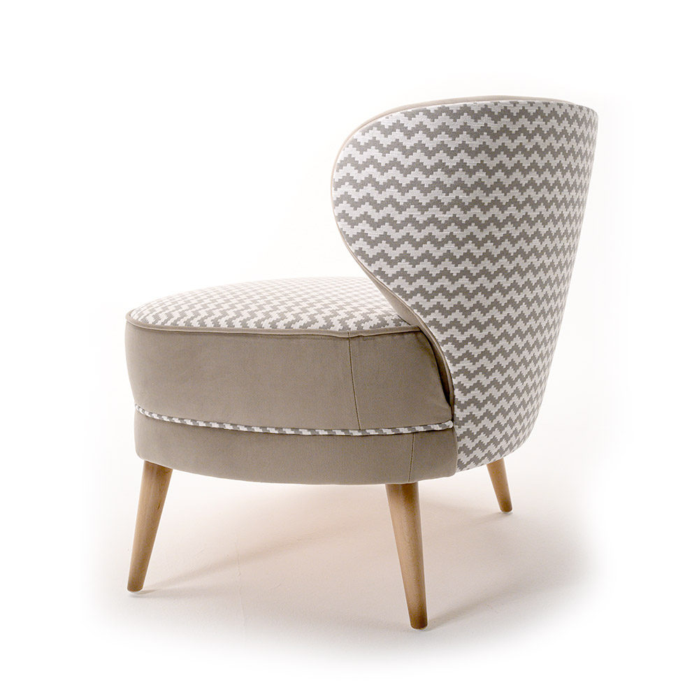 Hermosa y original butaca pequeña con tapicería realmente cómoda, tanto en el asiento como en el respaldo, para un mueble artesanal realmente único.