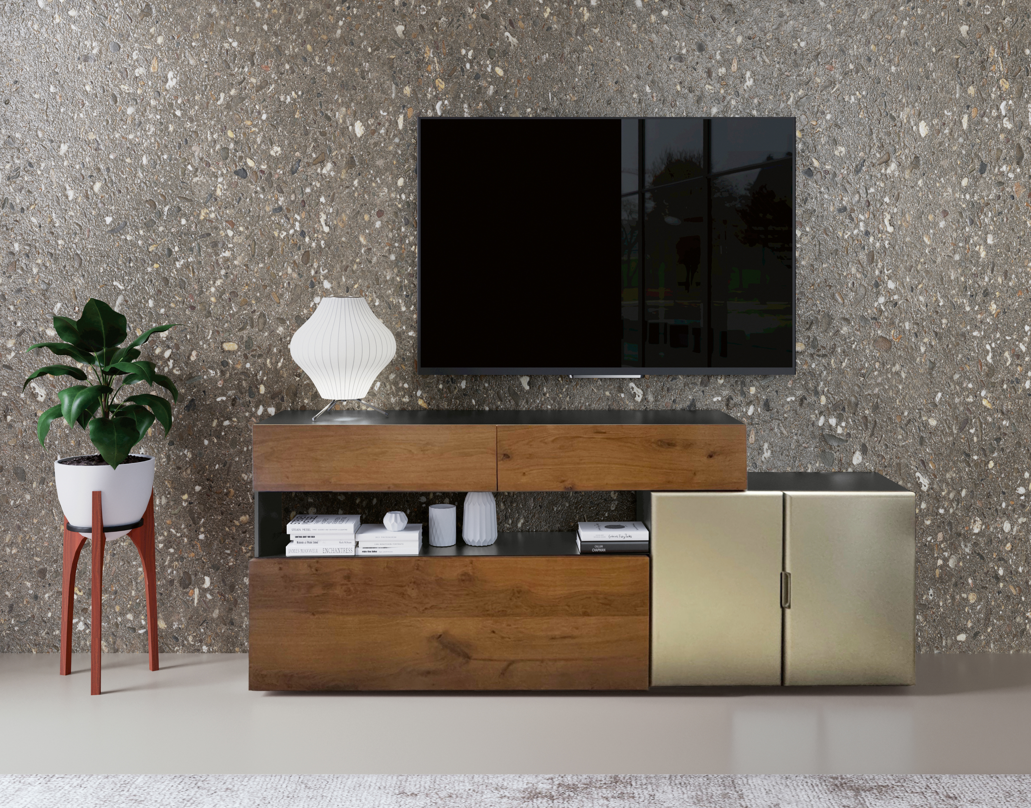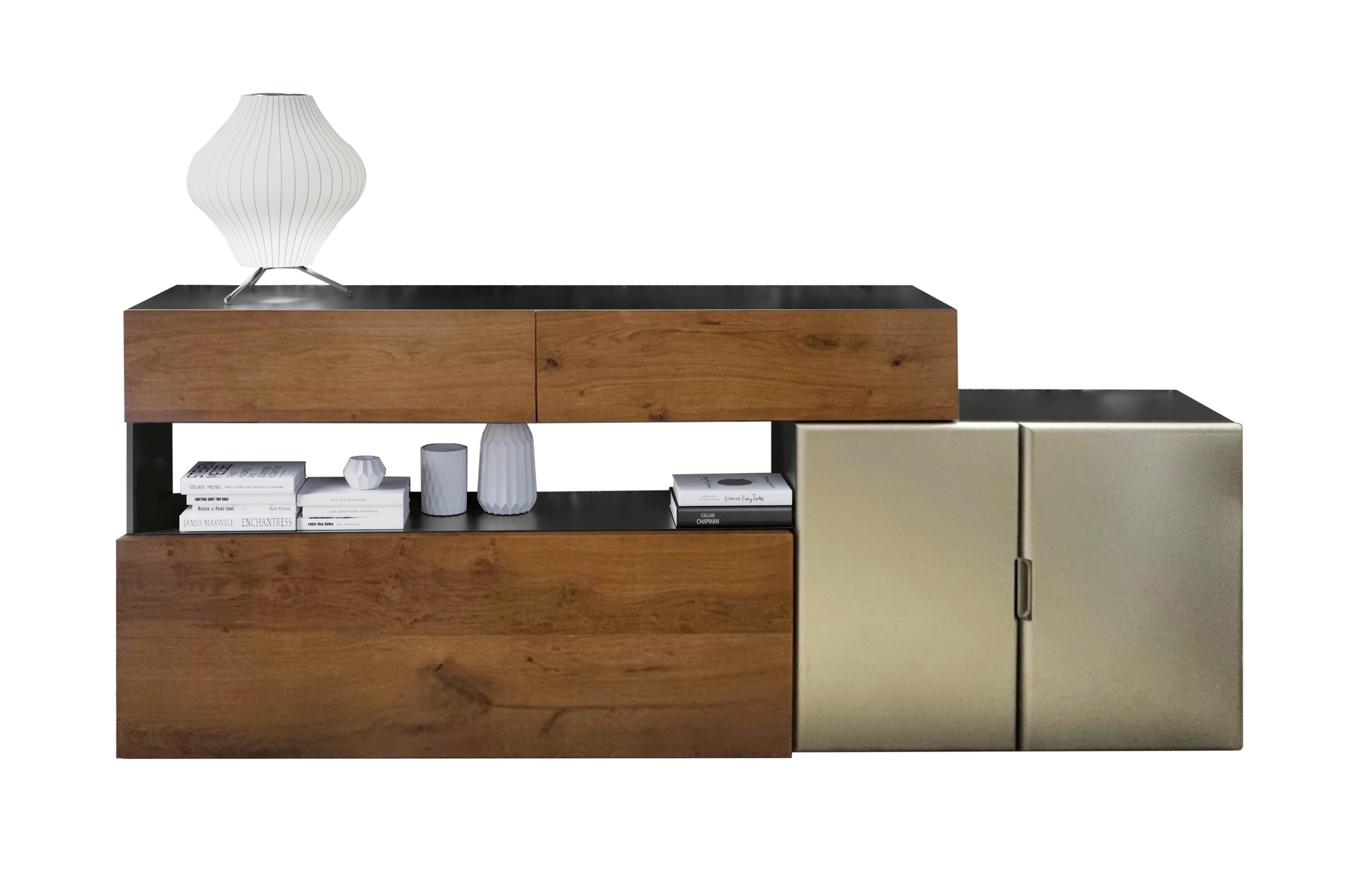 Esta vitrina encuentra su ubicación ideal en la sala de estar o en las paredes de la cocina, pero, gracias a su línea elegante, puede aparecer en contextos muy diferentes.