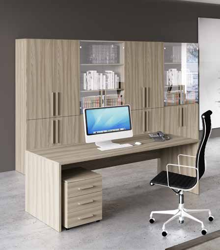 Un armario modular espacioso, diseñado para amueblar la pared de una oficina, zona de trabajo y, por qué no, la zona de estar del hogar con estilo y diseño moderno, ofreciendo la máxima funcionalidad. 6 módulos dobles, 5 de ellos con puertas cerradas y 1 con puertas de cristal para darle un toque de frescura.