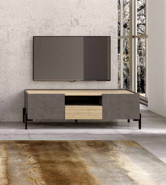 Dale un toque de elegancia y funcionalidad a tu salón con este exclusivo mueble para TV. Su diseño moderno y refinado se refleja en la sólida estructura de titanio, realzada por los frentes Cadiz y Portland, que logran un equilibrio perfecto entre estilo y practicidad. Las dos puertas abatibles ofrecen amplio espacio para organizar mejor tus dispositivos, mientras que el cajón y el compartimento abierto garantizan orden y versatilidad. Perfecto para quienes buscan un mueble sofisticado, capaz de realzar cualquier estancia con carácter y modernidad.