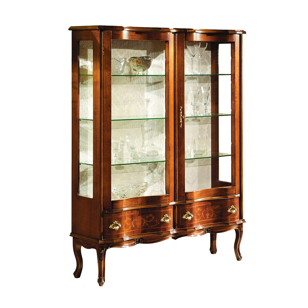 Vitrina de 2 puertas y 2 cajones con marquetería "Old Venice"