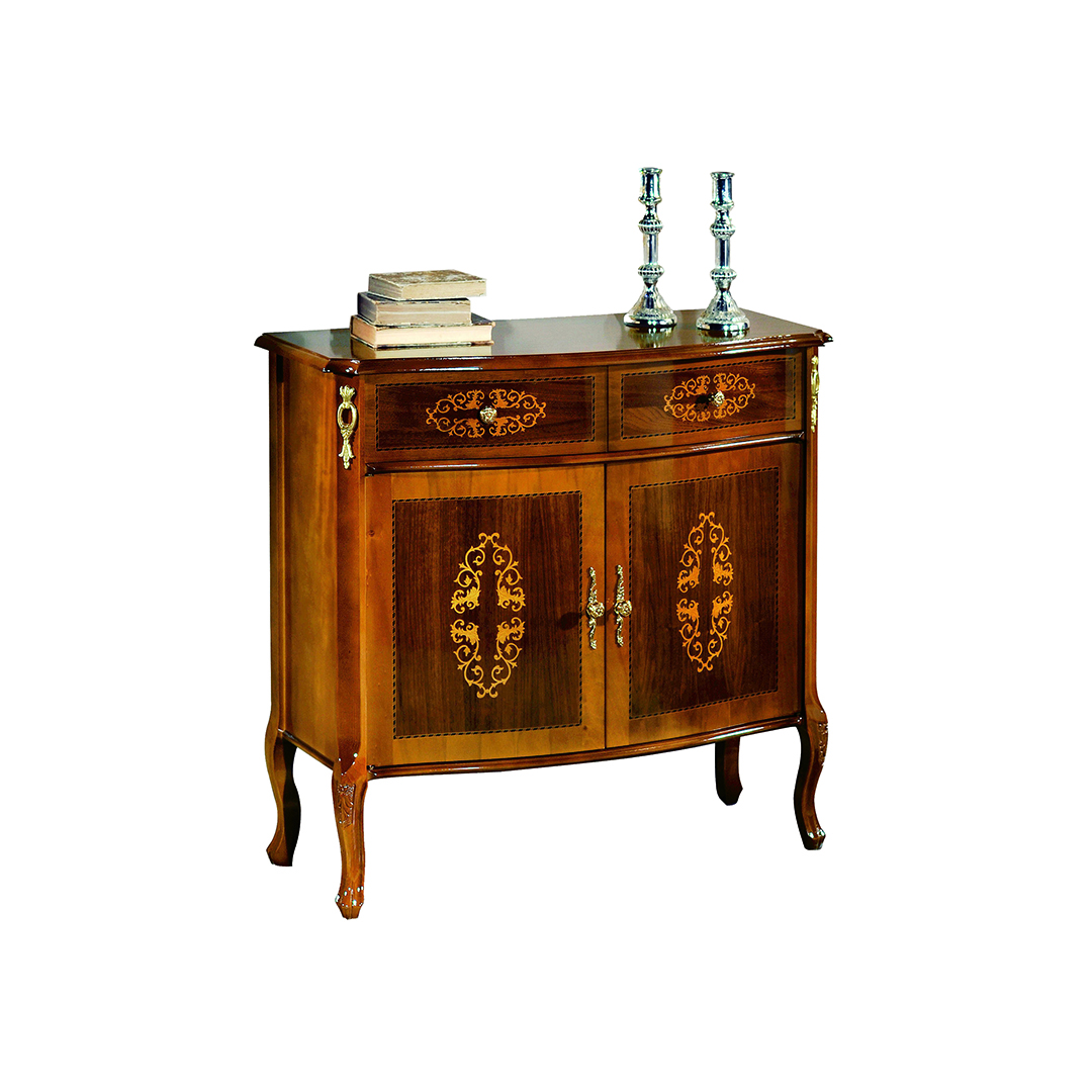 Aparador de 2 puertas y 1 cajón con incrustaciones.