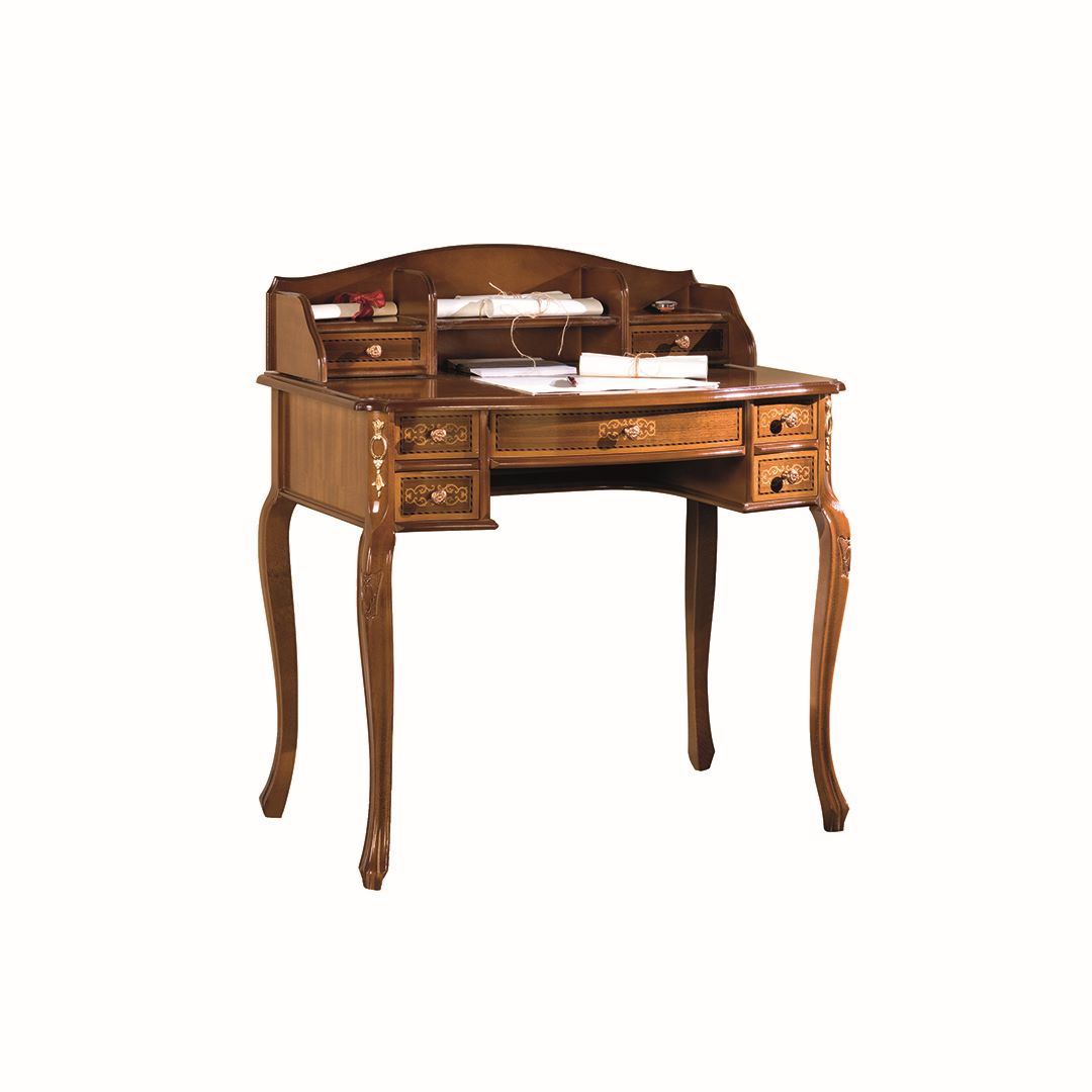 Escritorio Luis XVI cinco cajones en madera primera calidad