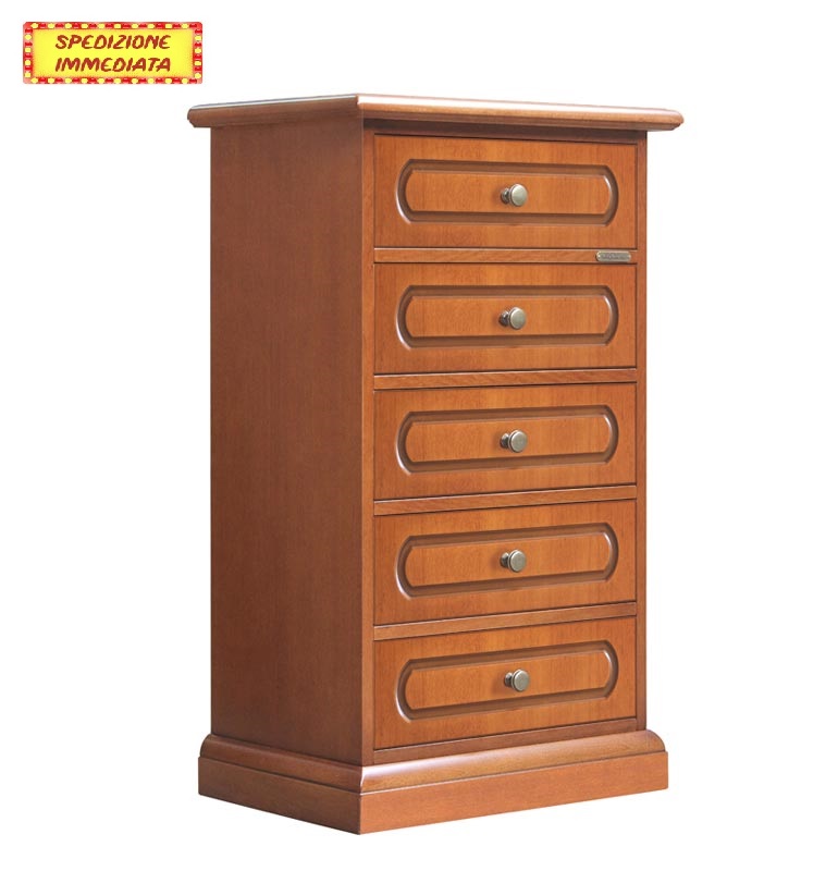 Preciosa cómoda de 5 cajones en color cerezo patinado.