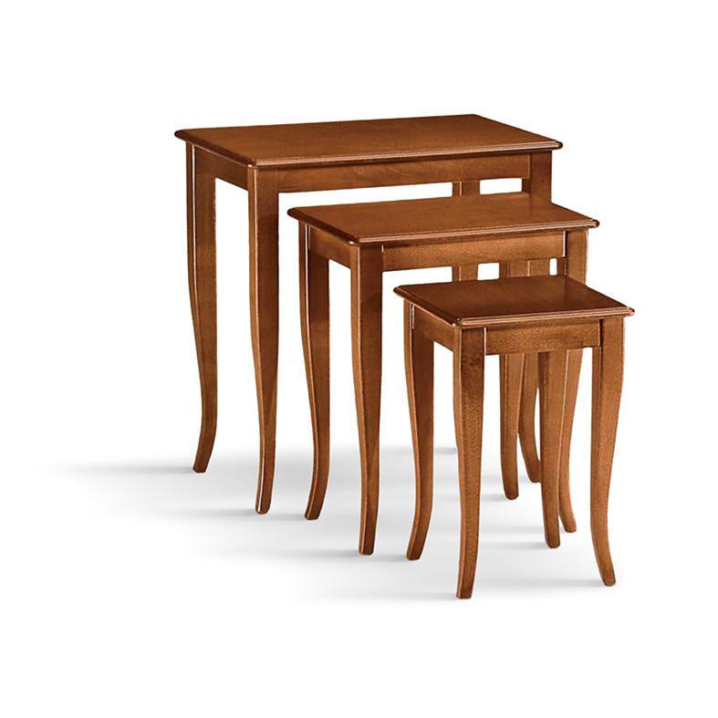 Elegante trío de mesitas de líneas clásicas pero esbeltas, gracias a sus patas en forma de sable.