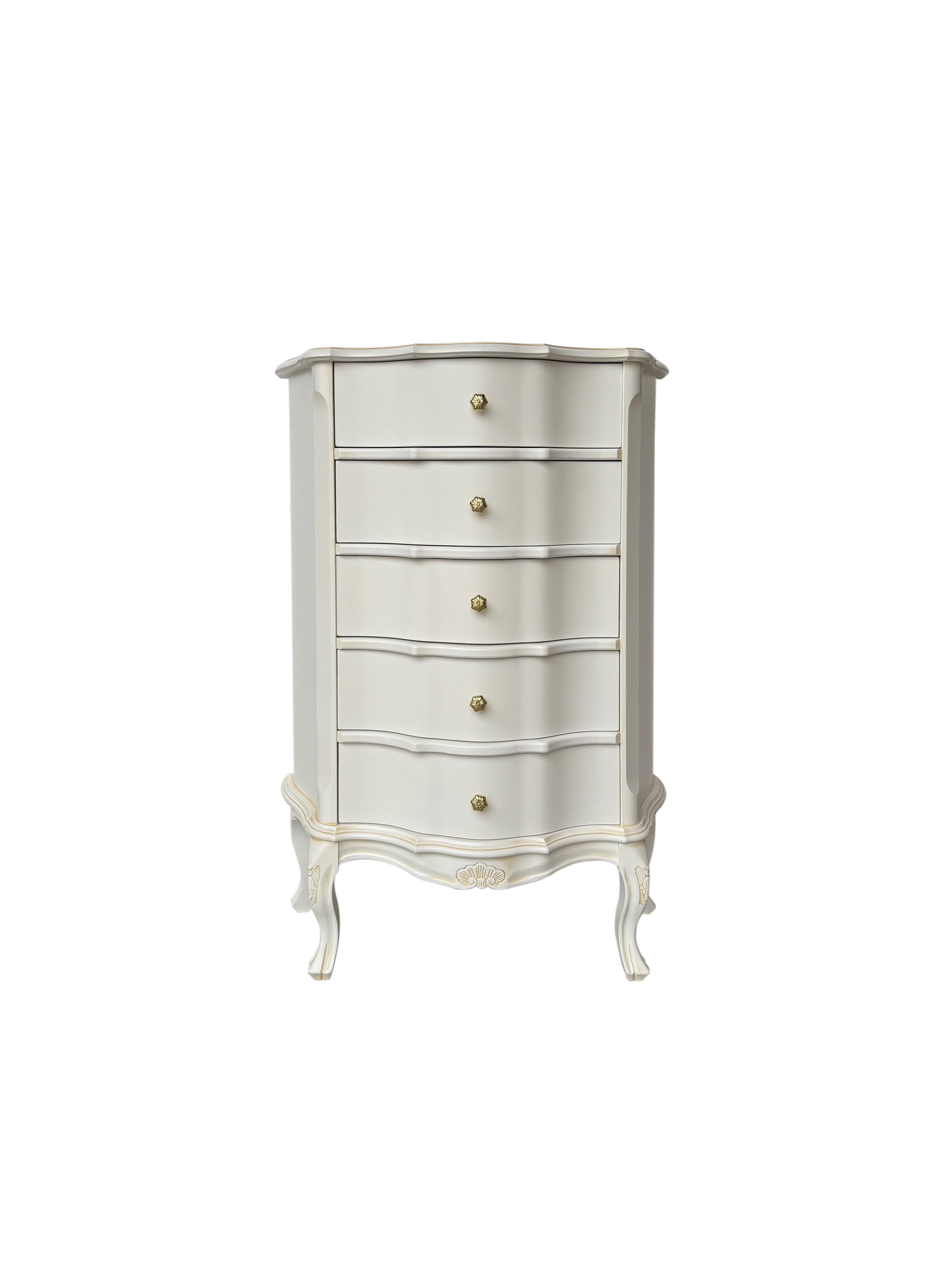 Preciosa cómoda con 5 amplios cajones, caracterizada por el bonito perfilado de sus perfiles y líneas.
