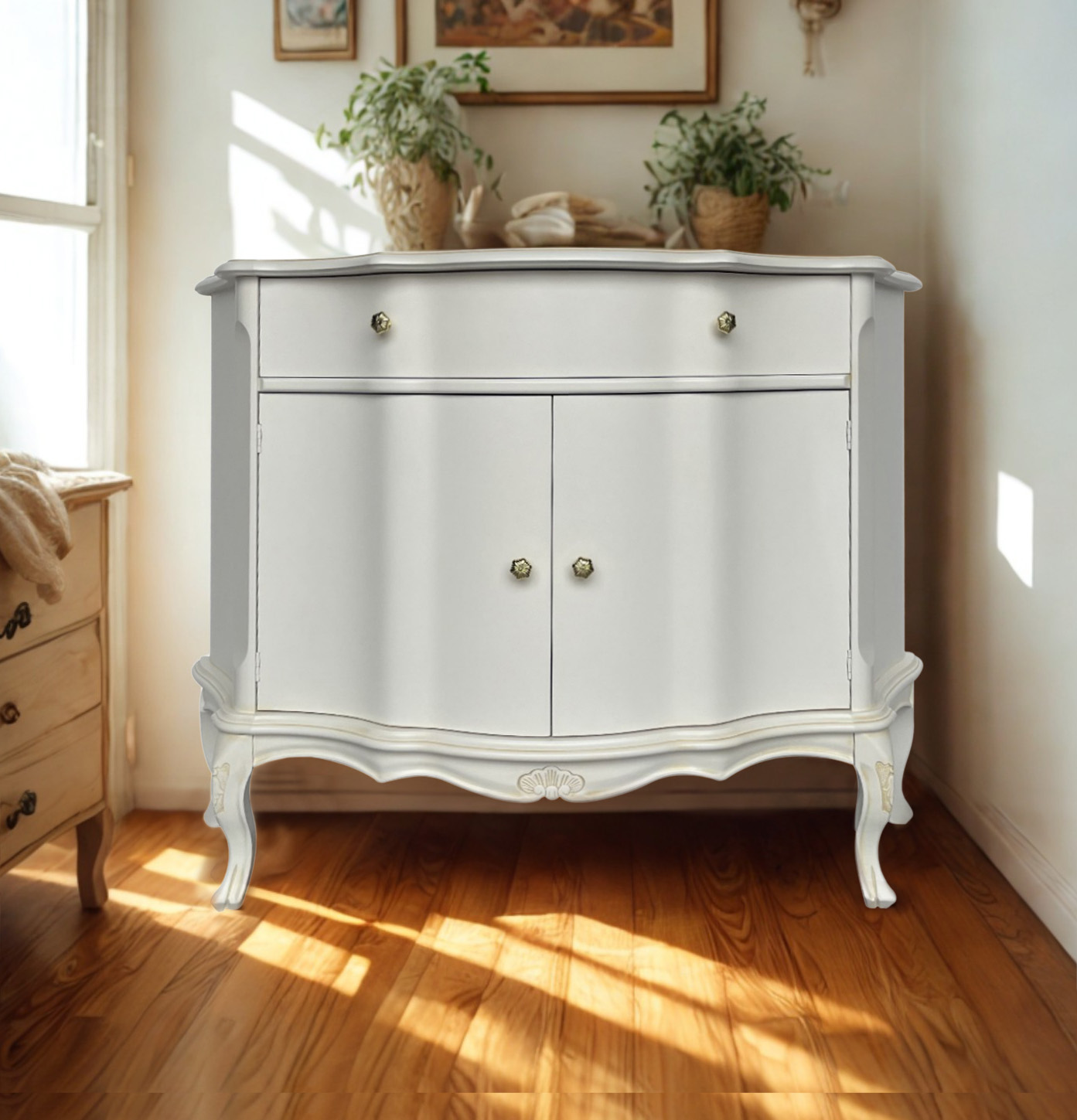 Splendida credenza con specchiera: composizione per un ambiente raffinato che, grazie a questo splendido elemento d'arredo, sarà valorizzato al massimo.La credenza modello MT-62 è decorata con foglia oro su raffinata laccatura bianca. In abbinamento, a rendere maestosa la composizione, la splendida specchiera dalla forma elegante e classica, anch'essa valorizzata nelle parti intagliate, dall'applicazione della foglia oro.L'espressione massima dello stile e della classicità è rappresentata al meglio da questa composizione credenza con specchiera. Il suo valore è decisamente elevato e soltanto la vendita diretta da noi attuata permette questo prezzo, introvabile altrove per un prodotto di tale qualità.Dimensione specchiera- Esterne H130 x L152 cm spessore 8 cm- Misura effettiva solo specchio cm 131 x h96Dimensioni credenza: - Totali L177 x P57,8 x H91,3 cm- Cassetto capacità cm L47 x P42 x H11,4 (L esterna cm 49,7)- Dimensioni ante esterne cm L49,3 x H60,2- Dimensioni anta centrale cm L49,7 x H44,5